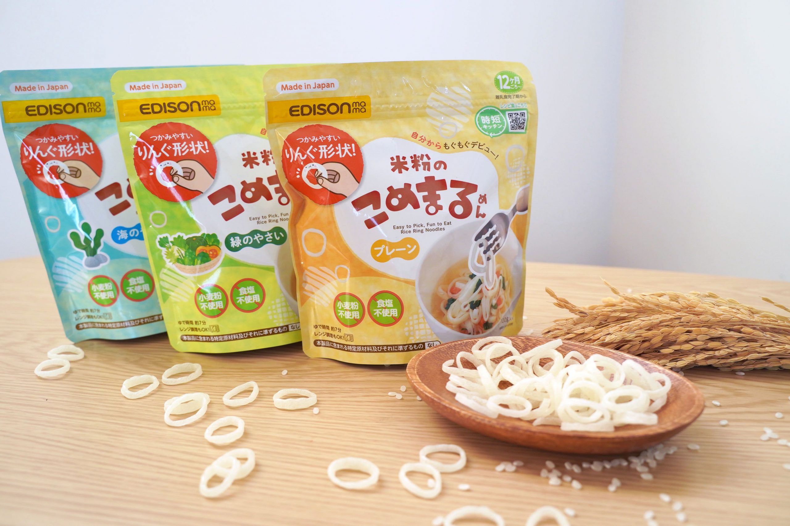米粉のこめまるめんは、手づかみ食べやカトラリーでも食べやすいリングの形をした、これまでにないうどんです(※当社調べ)。原材料は国産米粉100%と水のみを使用しているため、ママやパパも安心して与えられるベビーフードです。お米本来のやさしい甘みとつるりとした食感が楽しめ、腹持ちも良いため食べ過ぎの心配もありません。株式会社ケイジェイシーは「今日よりも幸せな明日をつくる」をモットーに、ママ・パパ・ベビーの『できた!』を応援する企業です。私たちの商品は、愛情を込めて作られており、常に前進を目指しています。便利で楽しく、安全な工夫を随所に散りばめ、想いが詰まった商品をお客様にお届けしています。この商品はママの声から生まれました。製造にあたり、米粉のうどんを製造できる工場が少ないこと、そしてそれをリング状に成型する技術を持った工場がないことといった、多くの課題を乗り越えて完成しました。うどんのサイズや加熱温度、水分量などの絶妙な調整を行い、日本のお米の良さが最大限に引き出された商品です。職人の知識と経験を活かし、何度も試作を繰り返しながら完成させた画期的な商品です。リングの形状が最大の特徴であり、普通のうどんが滑り落ちたり汁はねしたりする問題を解消しました。カットが不要で食べやすく、後片付けも簡単です。このように、今までにあったようでなかった画期的なアイデアの商品です。米粉のこめまるめんは最近SNSでも話題となっており、手づかみ食べやカトラリーの練習をさせたいママパパにも、後片付けを心配してうどんを避けていたママパパにも、それぞれおすすめです。ぜひお試しください。