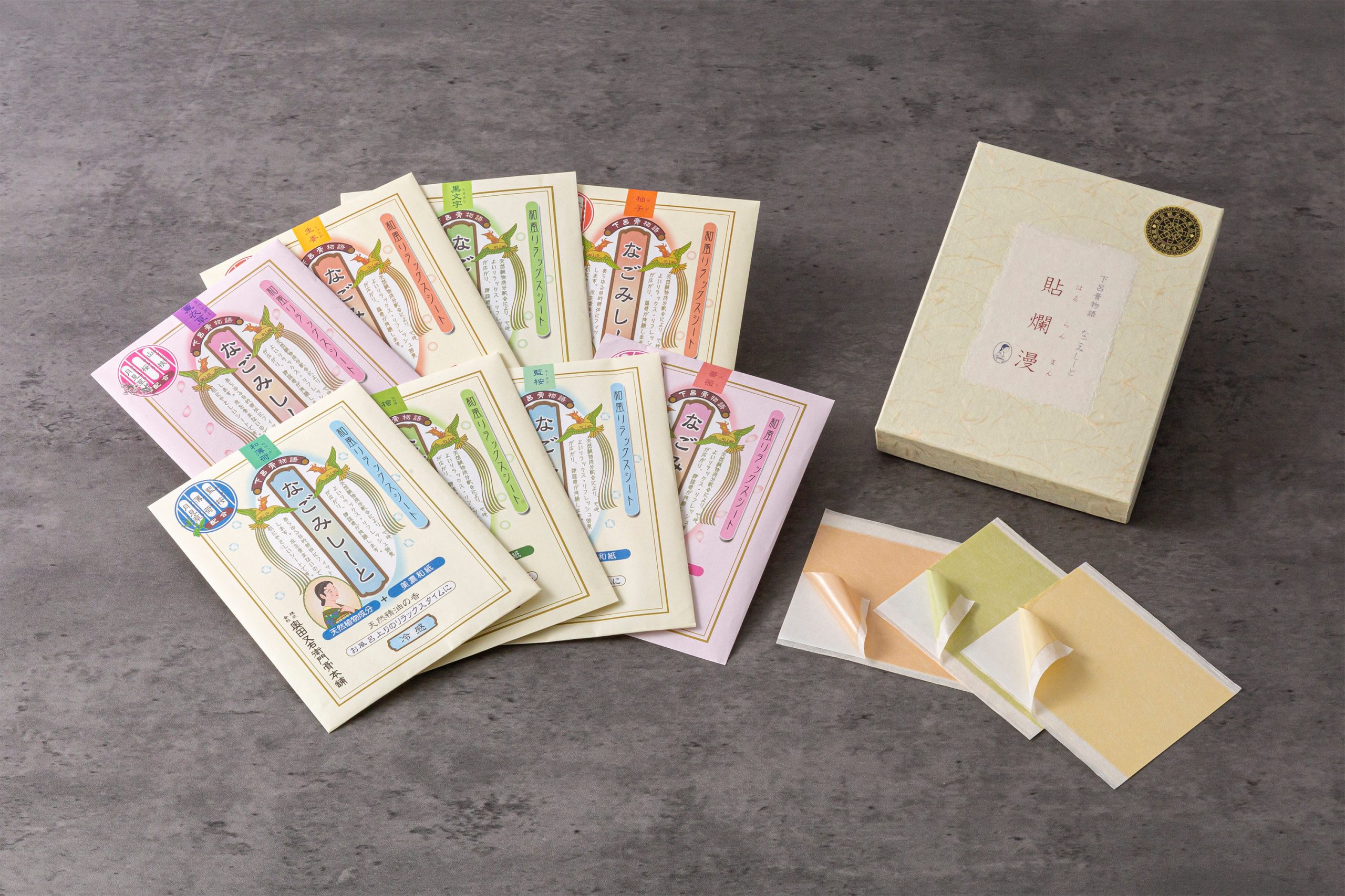 美濃和紙に天然植物成分を塗り伸ばした貼るアロマシートが下呂膏物語【なごみしーと】です。日本産(和薄荷・柚子・檜・ラベンダー等)の12種類のエッセンシャルオイルのほのかな香りが漂い、足裏・ふくらはぎ・肩腰に貼ることで心地よさが体中に拡がり、癒しのひと時を過ごせます。日中のリフレッシュタイムやお風呂上がり・お休み前のリラックスタイムに最適。同じく下呂膏の天然植物成分と天然精油を配合のゼリー状石鹸【楊貴肌玉せっけん】や美肌入浴剤【なごみの美湯】、100%食品から仕上がった飛騨産蒟蒻パフ(こんにゃくスポンジ)【楊貴肌玉ぱふ】をラインナップ。まるで玉羊羹のように爪楊枝で割ってとり出すゼリーのようなサボンで、トレイはソープディッシュに早変わり。パッケージは小物入れに使用できます。色も香りも天然由来で防腐剤不使用の安心安全な石鹸です。こんにゃくパフと一緒に使用することで肌はつるつるすべすべに。精油の香りと和漢・飛騨の恵みがやさしくからだを包んでくれます。