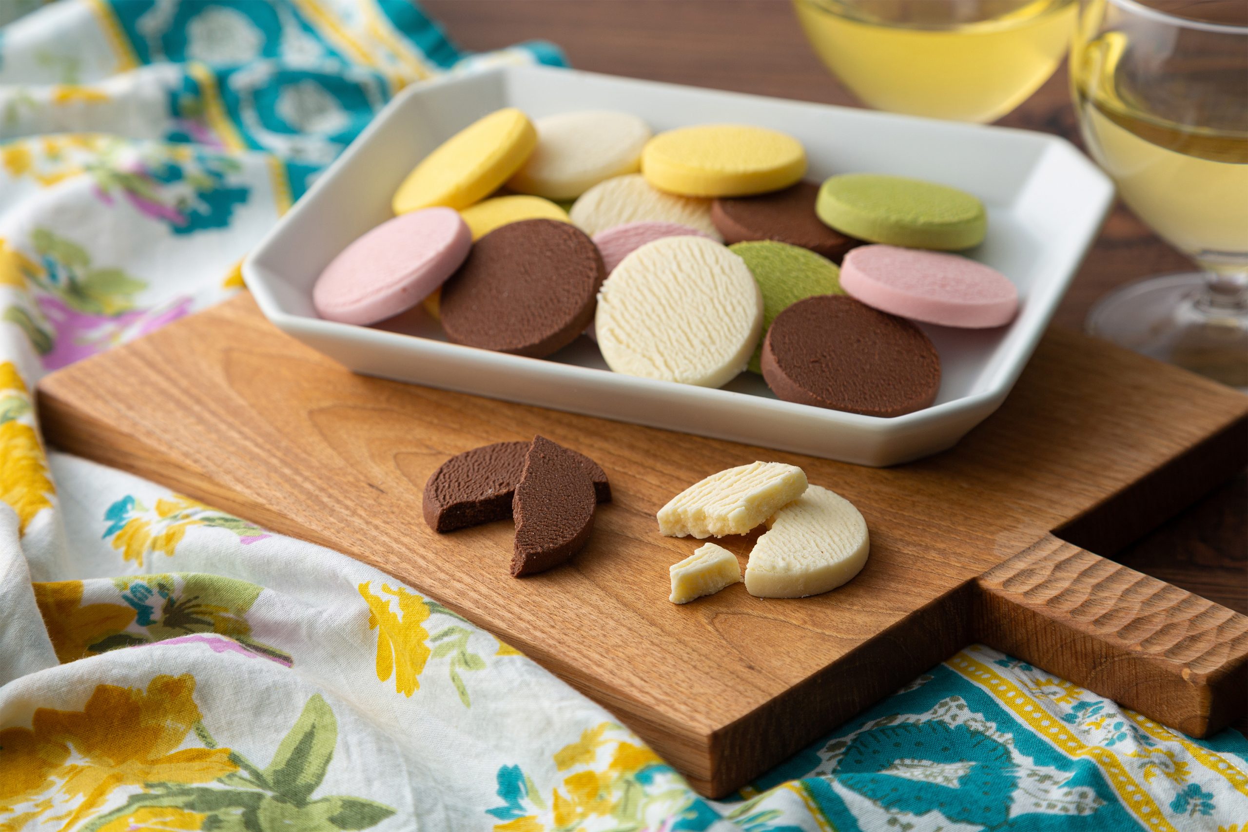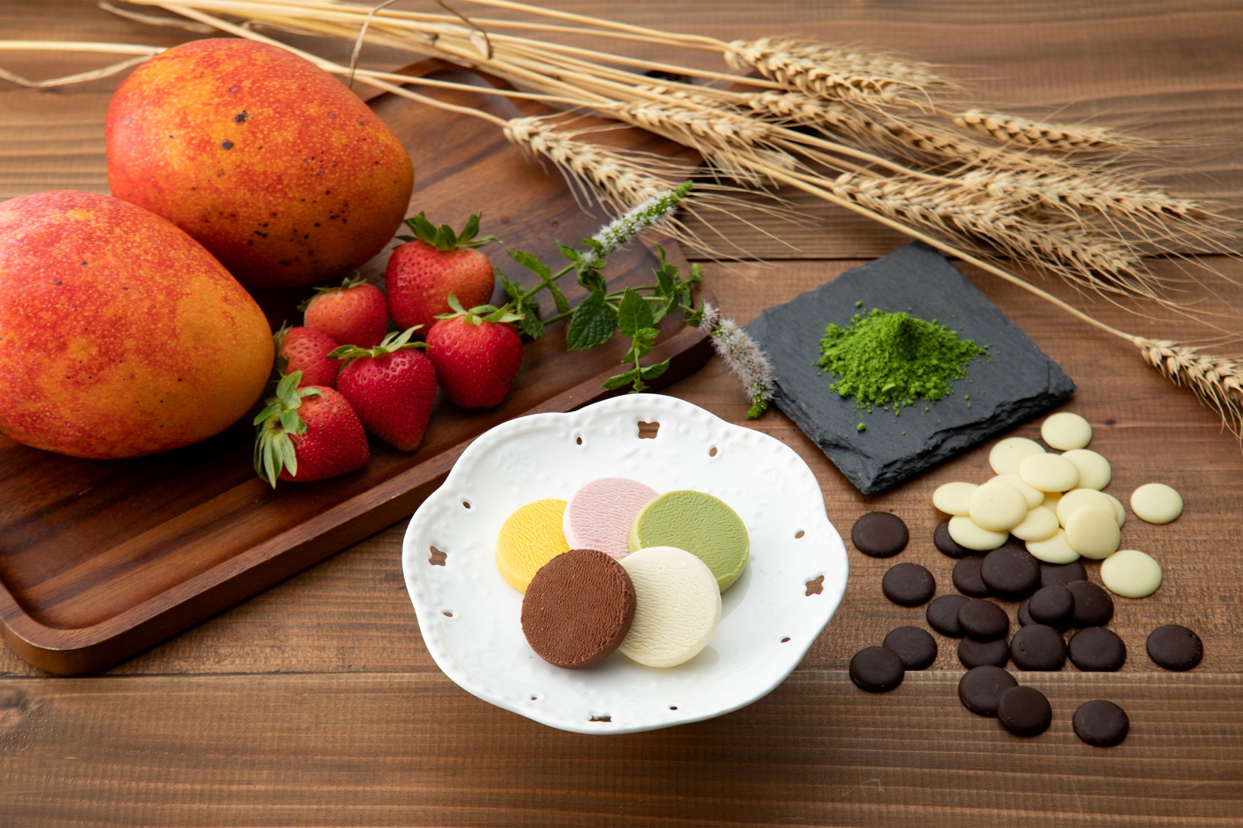 鏡野ほろりは、地元の岡山県津山産小麦(津山のほほえみ)とベルギー産クーベルチュールチョコレートを使用し、焼き上げた新食感クッキーです。洋菓子屋だからこそできる、こだわりの焼き加減で焼き上げています。想像よりはるかにほろりと繊細で、お口の中で崩れるとともにとろけてなくなってしまいます。なめらかな口当たりなので、クッキーよりチョコに近い印象ですが、歯切れよく柔らかな食感は、チョコともまた違い、今まで出会ったことのない食感です。チョコとクッキーのいいとこどりのようなスイーツで、常温で食べると柔らかくよりほろりと溶け、冷やすと初めはサクッとクッキーのような食感で、シンプルな見た目からは想像がつかないスイーツです。フレーバーは5種あり、大人の味「スイート」、濃厚なミルク味の「ホワイトミルク」、フルーティな甘さ広がる「マンゴー」、甘酸っぱさが魅力の「ストロベリー」、ほろ苦さの漂う宇治抹茶を使った「抹茶」です。わかなは、厳選した地元の食材にこだわり、美味しく安全で安心して召し上がっていただける菓子作りを目指し、鏡野ほろりも完全自社手作りでお客様にお届けしております。