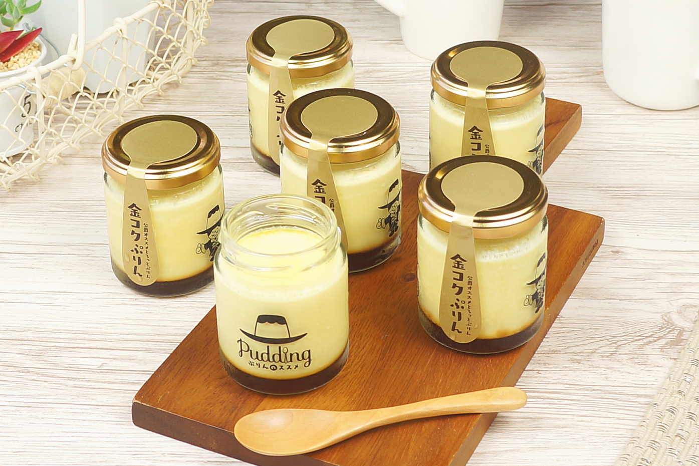 福岡県にあるプリン専門店「ぷりんのススメ」で開発したプリンとロールケーキのセットです。昔から食べる点滴といわれるほど栄養価の高いプリンですが、プリンそのものはもちろん、プリンを使ったいろいろなスイーツの提案をするお店で、「プリンを食べて元気になってほしい」という思いで営業しております。プリンだけでも常時10種類ほど提供しており、どの商品も味や素材にこだわって、一つ一つ手作りで製造しています。中でも一番人気の金コクぷりんは、数種類のクリームを独自配合して作っており、乳の持つコクを感じたい方へのプリンです。クリームのような柔らかいとろける食感が楽しめます。洋菓子用として開発された高級卵「エグロワイヤル」を使用し、より高級感あるプリンに仕上がっています。また、プリンを使用して作り上げたぷりんロールケーキも人気の商品です。「エグロワイヤル」の黄身だけ使用したプリンとクリームを中心に、国産小麦粉で作り上げたしっとりスポンジ生地で巻き上げたロールケーキです。コクがあり、濃厚でなめらかな舌ざわりの手作りプリンと生地の相性はバランスも良く、その味わいは格別で他では楽しめない仕上がりです。
