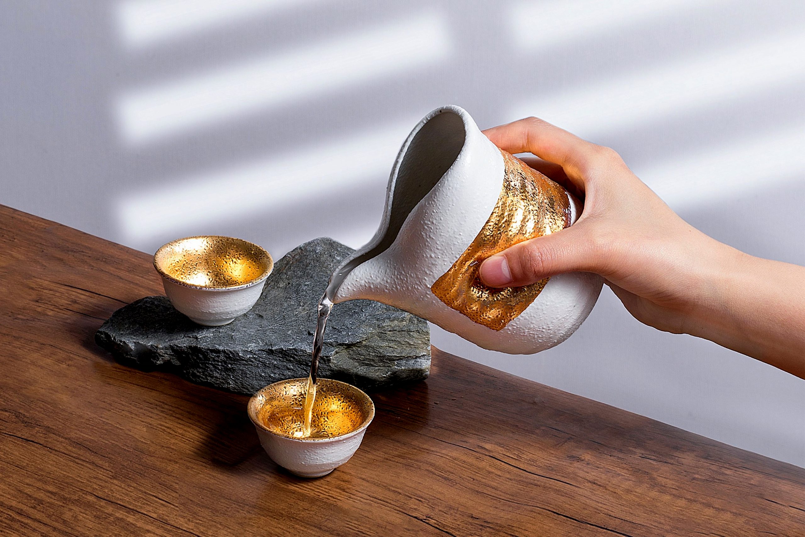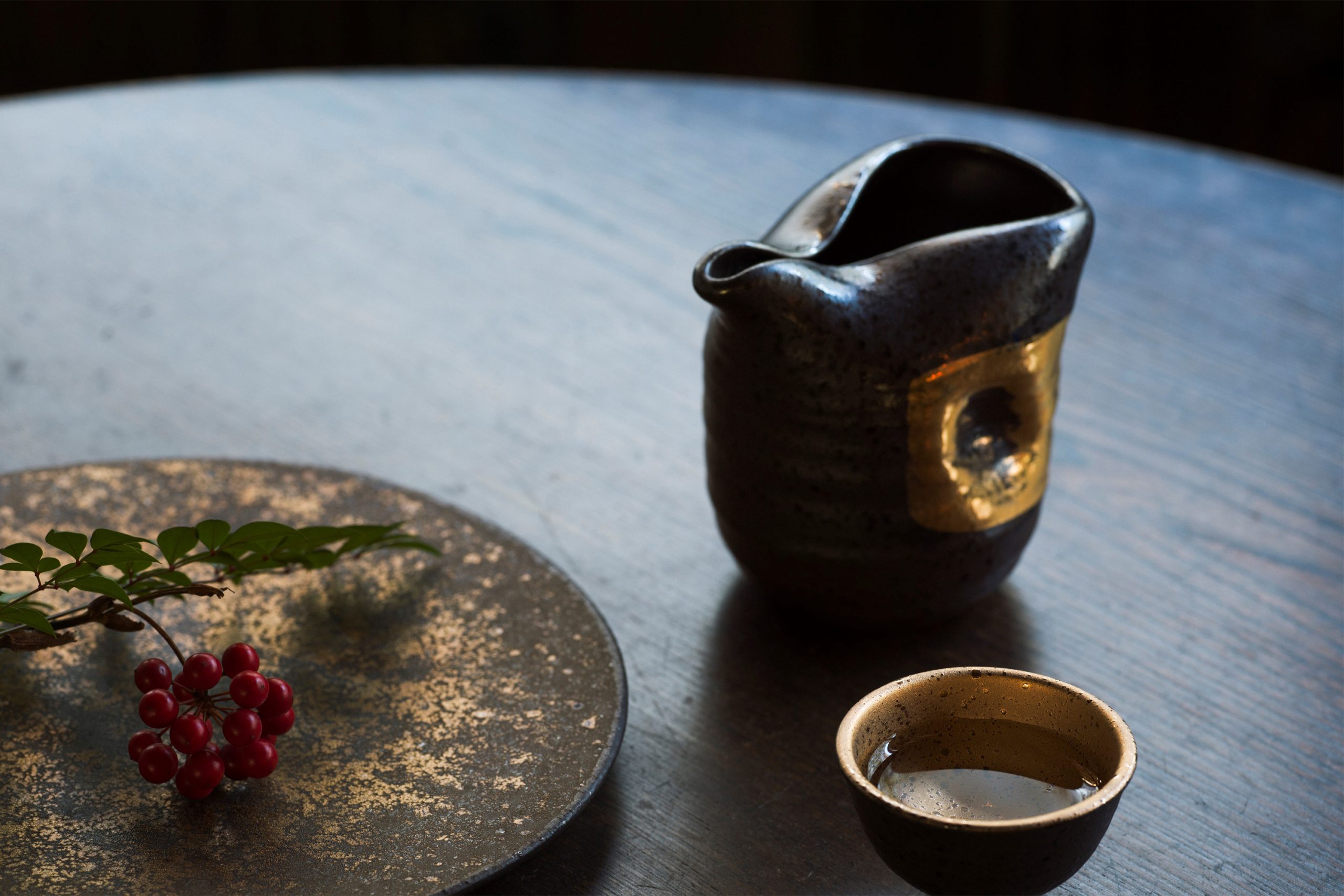 本商品は、職人の手作業による土物ならではの温かみと曲線の美しさに純金の金彩を施すことで「伝統美」と「モダンさ」を融合させた美濃焼の酒器のセットです。 私たちは1988年創業の美濃焼の窯元で、創業以来、「ガバ鋳込み(排泥鋳込み成形)」による袋形状の和食器(徳利、土瓶など)の製造してきました。ガバ鋳込みは伝統的な成形方法の1つで、泥を石膏型に流し込んで成形し、型を組み合わせることで急須などの複雑な形状を作ることが可能です。ガバ鋳込みは機械化が難しく、自動化が当たり前になった現在においても職人が手作業で行っており、その生産性の悪さから採用する窯元は減少しています。 ですが、私たちは日本独自の世界観である”侘び寂び*”を表現するために、ガバ鋳込みでしか表現できない美しい曲線や形状と美濃地方の赤土(粘土)にこだわった製品づくりを続けています。鉄分を豊富に含む赤土は、白土に対して扱いが難しく、この赤土を使用しガバ鋳込みをすることでさらに手間がかかりますが、母材を赤土にし釉薬をかけて焼成した時に得られる質感や色合いで”侘び寂び”を表現するためにあえて採用しています。 本商品は、成型以降の細かい工程もすべて職人による手作業で行っており、片口には、”えくぼ”と呼ばれるへこみの持ち手をつけ、幅広ながらも持ちやすい機能性も備えています。手作業だからこそ出せる柔らかな曲線の美しさと重厚感のある表情の奥深さ、そこに純金の金彩を施すことで、祝い事などの特別な時間を演出するのにふさわしい存在感を放つ逸品に仕上げています。  *侘び: 慎ましく簡素なものの優美/寂び: 時間の経過とそれに伴う劣化