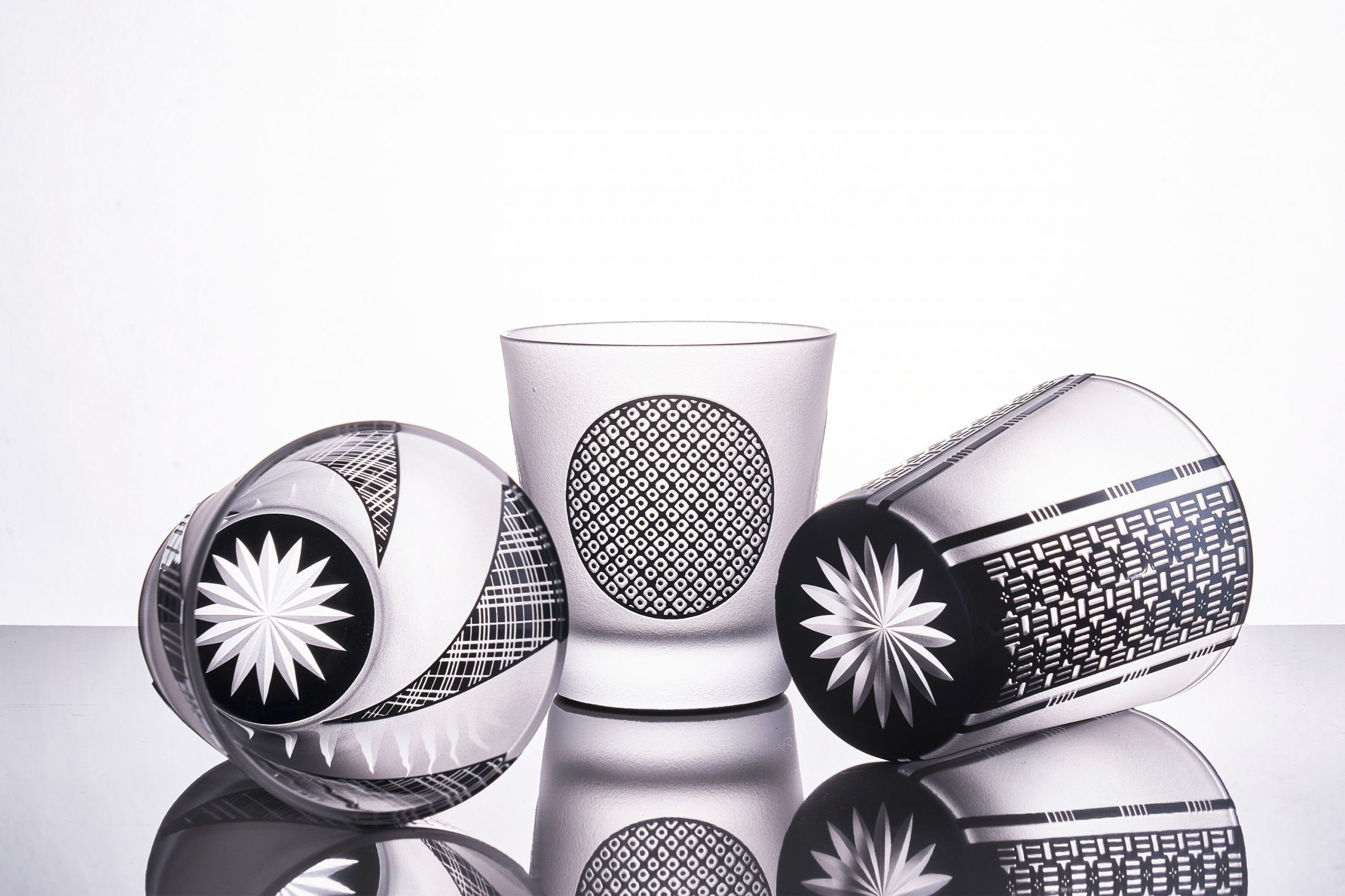 ・江戸硝子「黒小紋」(鹿の子、三筋格子、割付柄)