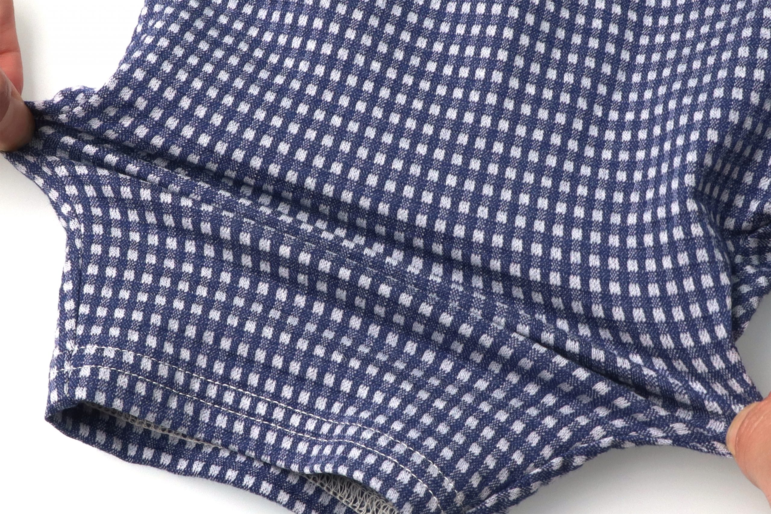 「ニットサッカーハーフパンツ」は、デコボコとした部分と平らな部分が交互に現れるニットサッカー素材を使用しており、肌に触れる面積が少ないため、さらっとした清涼感があり、汗をかいても涼しくドライな着心地です。この生地は京都の素材メーカーと共同で開発され、丸高衣料株式会社の日本国内の自社工場で生産されています。柔らかくて着心地が良いため、暑い夏でもリラックスして着用できるおすすめの素材です。お尻部分がゆったりとしたサルエルシルエットになっており、男の子も女の子もユニセックスで履けるアイテムです。特に、デザイン性と機能性を兼ね備えたこのパンツは、日常のカジュアルなシーンからアウトドアまで幅広く活躍します。さらに、洗濯後も型崩れしにくく、耐久性にも優れているため、長く愛用できる一着です。