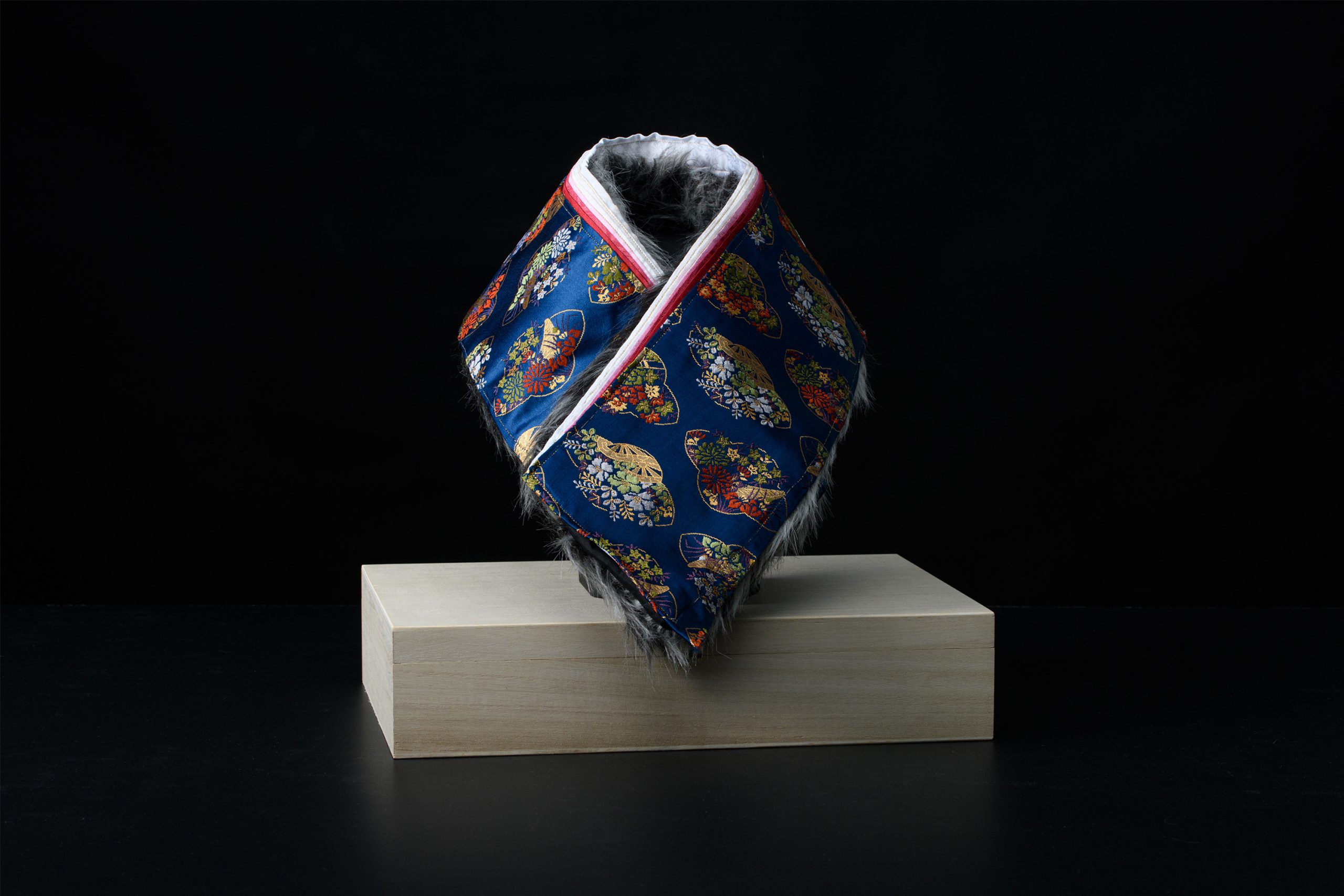 「KIMINARI:Kimono-Inspired Tippet」は、平安時代の十二単に見られる“襲(かさね)の色目”をモチーフに、元人形メーカーの強みを活かし、雛人形に用いられる希少な金襴生地で仕立てられたティペットです。お雛様をお買い求めになるお客様との会話から着想を得て、“節目の文化を日常的で身近なものに”という思いを形にしました。ひな祭りに象徴される“大切な想いを託す”文化を、現代の日常でまとう“装い”として再構築しています。身につけるだけでなく、使わない時はインテリアとして飾れるデザインで一年を通して楽しめます。パッケージはサステナブルを徹底追求し、贅沢な絞り染めは風呂敷風エコバッグに、桐箱や和紙は吸湿・防臭機能を活かして収納に再利用可能です。竹炭も付属し、メンテナンス面までオールインワンでお届けします。これは雛人形の受け渡しのスタイルを踏襲したもので、日本人が古来から大切にしてきた“もったいない”の知恵を現代の贈り物に活かした形です。“使う・贈る・飾る”という3つの体験をひとつに集約し、文化的価値と日常性を両立しています。Kimono-inspired Tippetとして洋装にも合わせやすく、海外でも日本文化を身近に感じてもらえるプロダクトです。