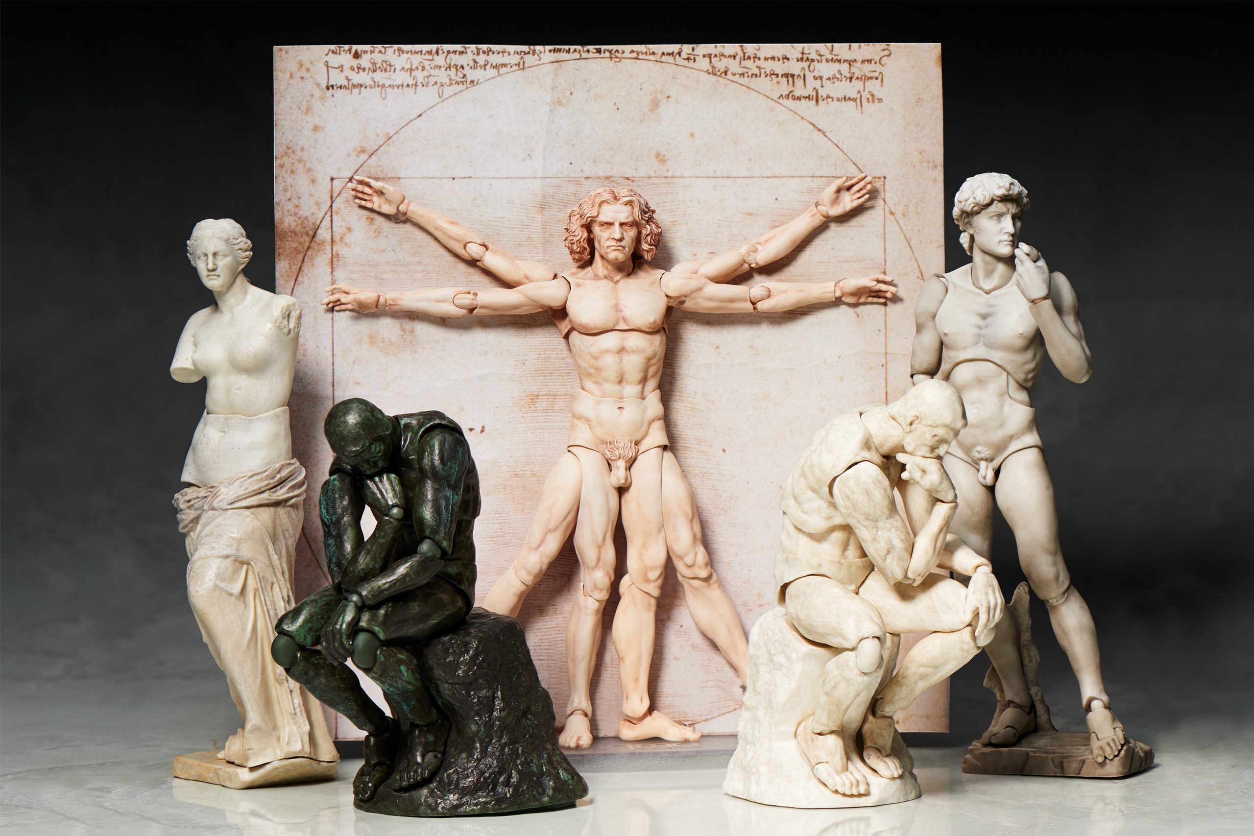 ラインナップには「考える人」「ミロのヴィーナス」「ダビデ像」「叫び」「モナリザ」など、国内外の著名な絵画や彫刻、歴史的遺物が揃い、作品の再現はもちろん、自由なポージングや付属パーツによるオリジナルのシチュエーションも楽しめます。