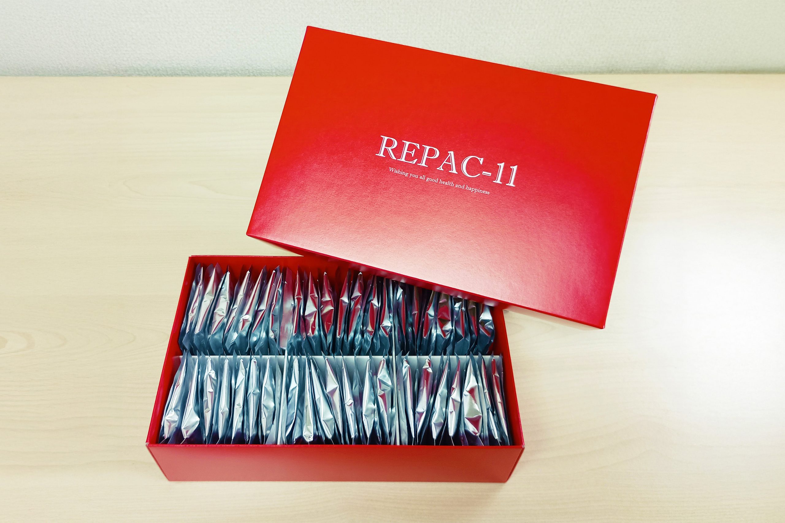 「REPAC-11」は、2007年に開発が始まり、良質な成分との出会いを重ねて改良を続けてきた健康補助食品です。11回目の処方変更を経て、18年の歳月をかけて現在の形にたどり着きました。この商品の特徴は、「足りないものを補う」のではなく、「日々の健康維持をサポートする」ことを目指している点にあります。年齢を重ねた方の健康維持に着目し、成分構成を丁寧に追求しました。配合成分には、NMN、5-デアザフラビン、PQQ、フランスオーク抽出物、レスベラトロールなどが含まれています。さらに、注目の成分スペルミジンも採用し、毎日の健康的な生活をサポートします。1回の摂取量は10粒とやや多めですが、その分、開発者の強い思いやこだわりが詰まっています。弊社「健康屋本店」は愛媛県松山市で創業し、創業者自身と家族の健康を守りたいという願いから誠実な商品づくりを始めました。「80代を現役で。」その思いをひと粒ひと粒に込めてお届けしています。
