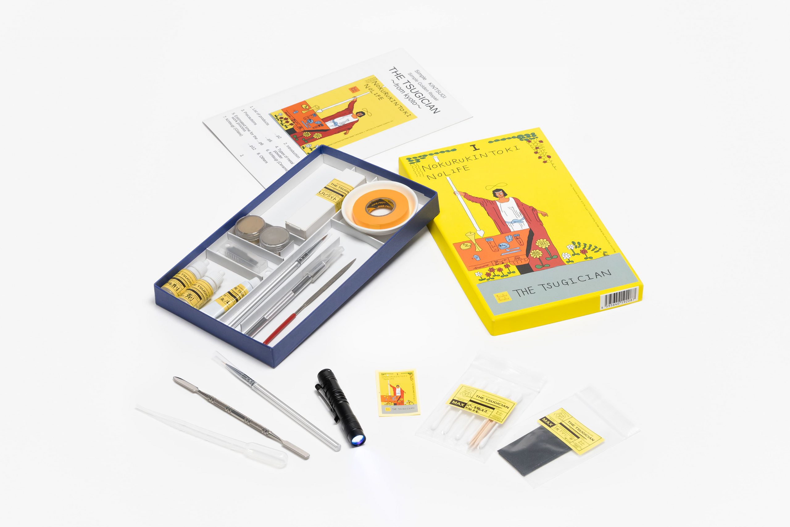 kulukulu THE TSUGICIAN 簡易玻璃金繕套裝,讓您輕鬆體驗金繕的樂趣。傳統的金繕使用天然漆,修復一件陶器需要數月時間。而這套裝使用膠水和凝膠代替天然漆,只需數小時即可完成修復。此套裝不僅可用於修復陶瓷,還可用於修復玻璃器皿,適合從初學者到高級用戶的廣泛用戶群。所有使用的材料均符合日本食品衛生法,成品也適合日常使用。我們希望金繕能激勵人們珍惜自己的物品。 Kurumi 株式會社於2016年3月在京都成立,最初是一家銷售線上產品的獨資企業,並於2018年12月正式註冊成立。我們目前銷售兩種金繕套裝,舉辦金繕工作坊,積極與企業合作。例如,我們開發了一些作品,包括在石膏板上繪製金繕圖案,然後再貼上金箔。金繕是日本的傳統文化,可以追溯到室町時代,使用真漆進行修復至少需要一到三個月的時間。然而,在當今社會,許多人發現很難投入那麼多時間來修復陶器。因此,我們開發了這款簡單的金繕套裝,讓金繕變得更容易上手,也更有趣。這款套裝是金繕產業首款使用紫外線的套裝,只需一分鐘即可使凝膠(基底)硬化。包裝採用魔術設計,並提供日語和英語的說明。您可以在週末的空閒時間獨自修復破損的陶器,也可以與朋友聚會,一起享受金繕的樂趣。根據裂縫和缺口的大小,最多可以修復五件或更多。請注意,完成的陶器不應放入洗碗機、烤箱或微波爐。我們目前正在製作一個演示該過程的影片。為什麼不在每個家庭都安裝一套呢?