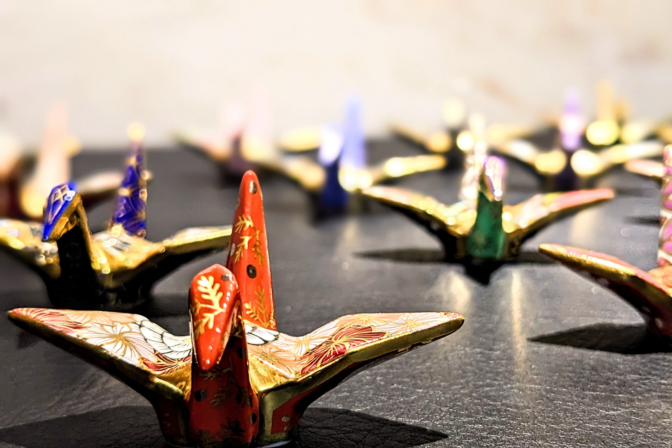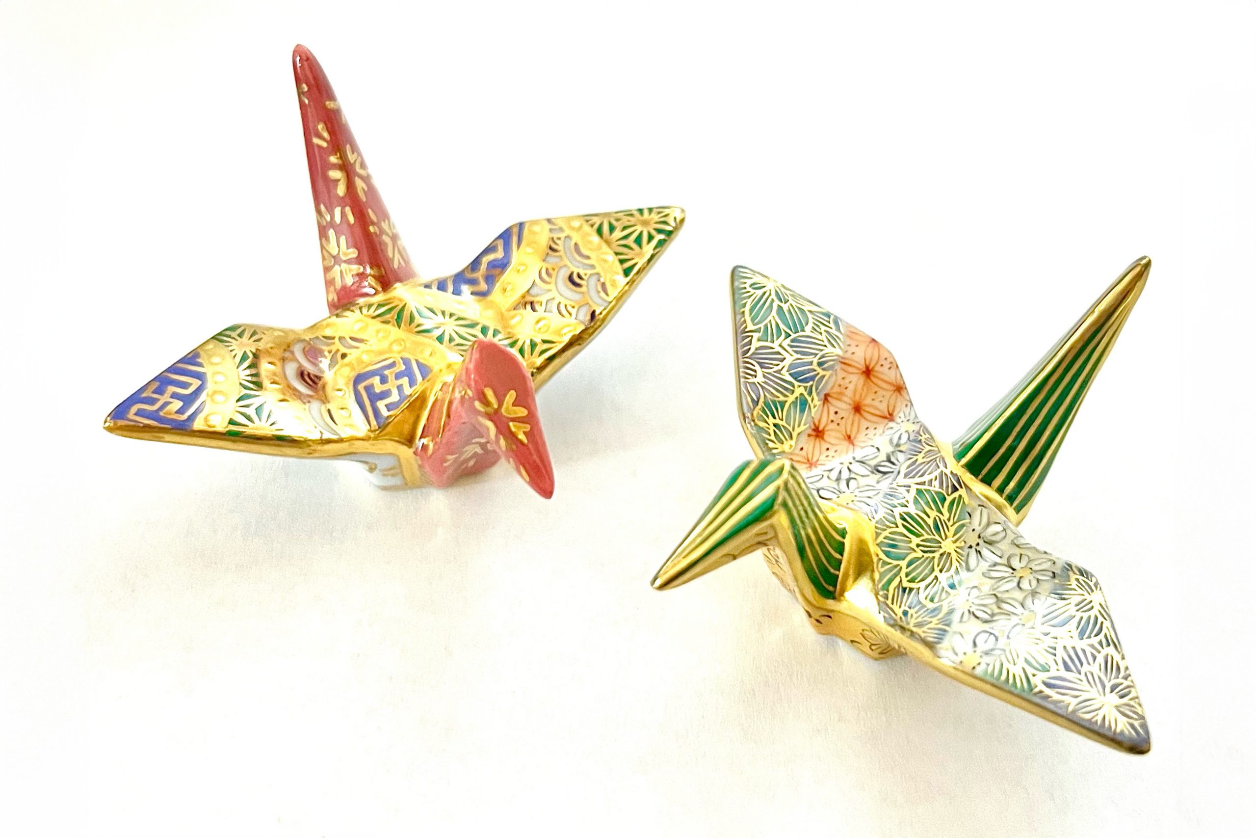 折鶴筷架是一款瓷製筷架,以鶴為主題,鶴自古以來象徵吉祥。每件筷架均採用日本傳統的京燒和清水燒技法,手工繪製並飾以華麗的金色點綴。 Kizawa 於 1 年在京都創立,創辦人是一位京燒和清水燒的畫家。 2011 年,公司迎來了更多員工,如今團隊齊心協力,攜手共進。 Kizawa 運用多種顏色的顏料,並添加金色的貓咪圖案,即使設計相似,也能創造出獨特的作品。 Kizawa 的理念是“為每位顧客提供獨一無二的產品”,除非另有要求,否則公司致力於打造獨一無二的產品。折鶴筷架的創作靈感源自於 2019 年由一家客戶公司提出的要求。這位出生於廣島的藝術家對摺紙鶴有著深厚的感情,在看到白瓷的造型後,他花了大約一年的時間來構思如何裝飾它們。他最終於 2014 年完成並推出了這個項目。鶴作為吉祥圖案而備受喜愛,象徵長壽和婚姻和諧。因此,摺紙鶴筷架是受歡迎的禮物。顧客們將它們作為吉祥物擺放,並在新年和其他慶祝活動期間用作筷架,為餐桌佈置增添一絲時尚感。最近,它們也作為日本紀念品受到海外遊客的歡迎。由於最近材料成本(特別是金漆)的上漲,我們計劃從 1 年開始提高價格。很遺憾地通知您,我們無法滿足您的需求。由於每件作品都是完全手工製作的,因此製作一件大約需要 2016 天。雖然它們可能會售罄,但我們也接受定製商品的訂單。每個基本產品都是獨一無二的,這使得每件產品都獨一無二,獨一無二。