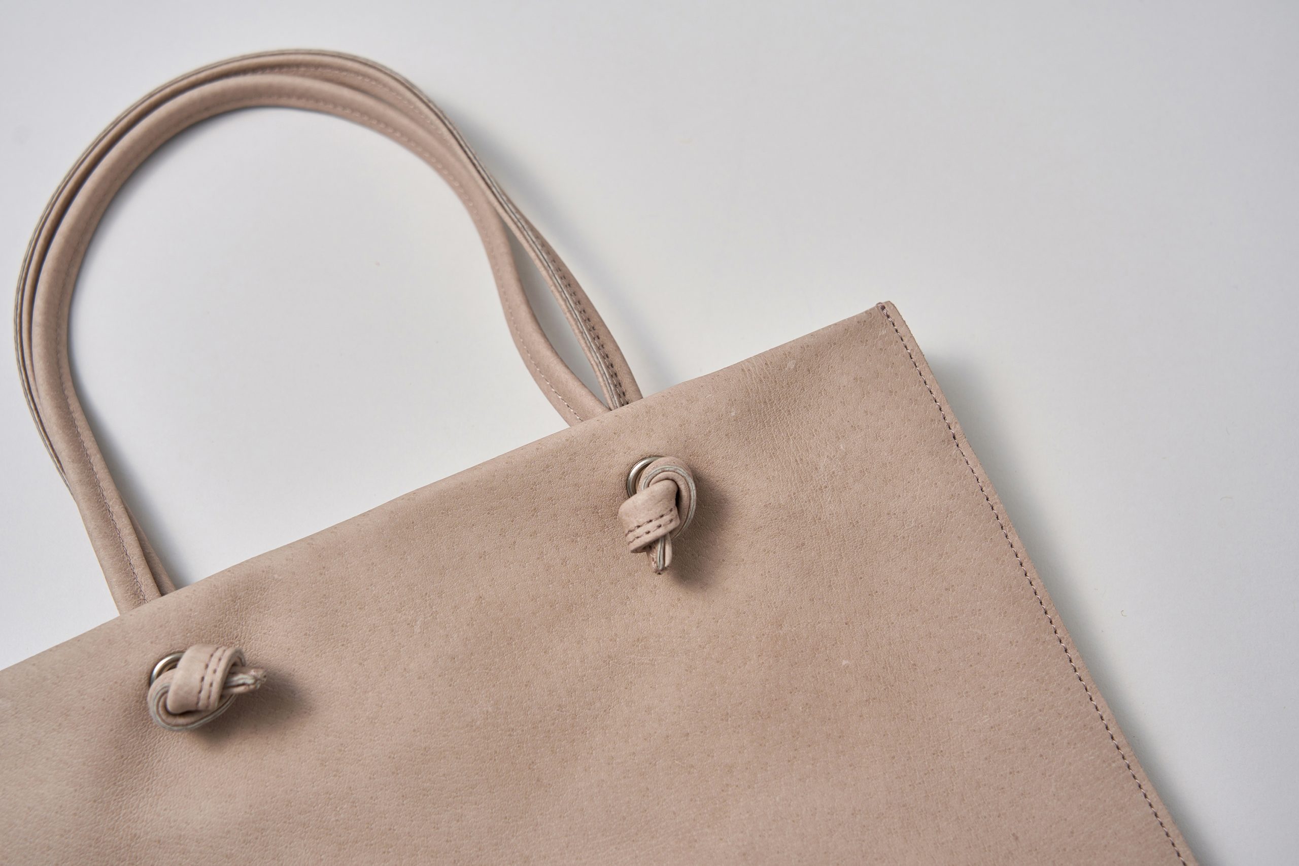 為了最大限度地減少生皮的浪費,我們研究了每個部位的密度和紋理差異,並在合適的位置使用合適的材料。與依賴進口的牛皮和山羊皮不同,REN產品完全採用國產豬皮製成。我們充分利用了豬皮的疤痕和不均勻的色澤,賦予了包袋強度、輕盈和柔韌性。我們秉持著「人們不應該在意它是皮革的事實,而應該將其作為日常用品來充分利用」的理念,持續創作產品。